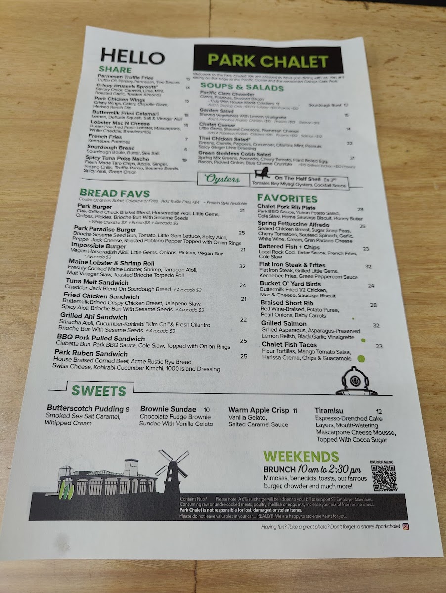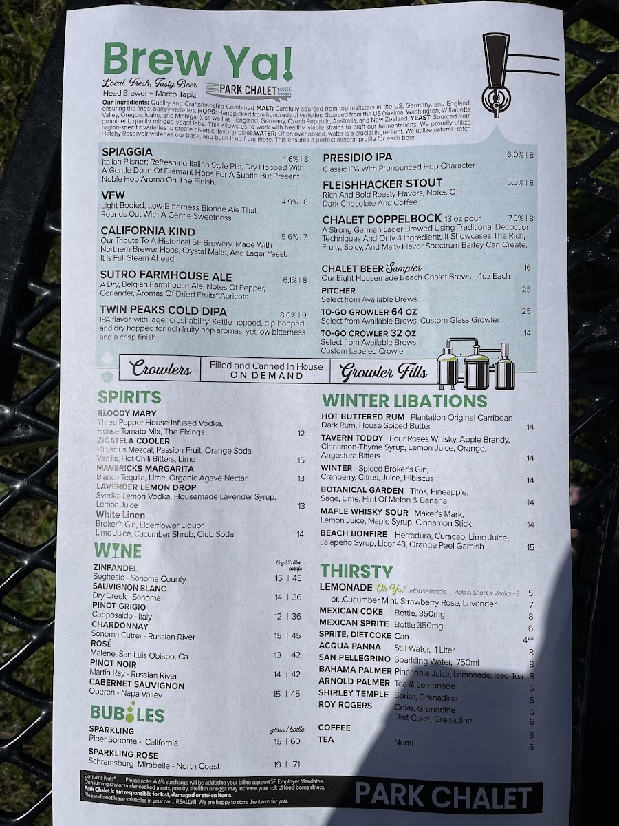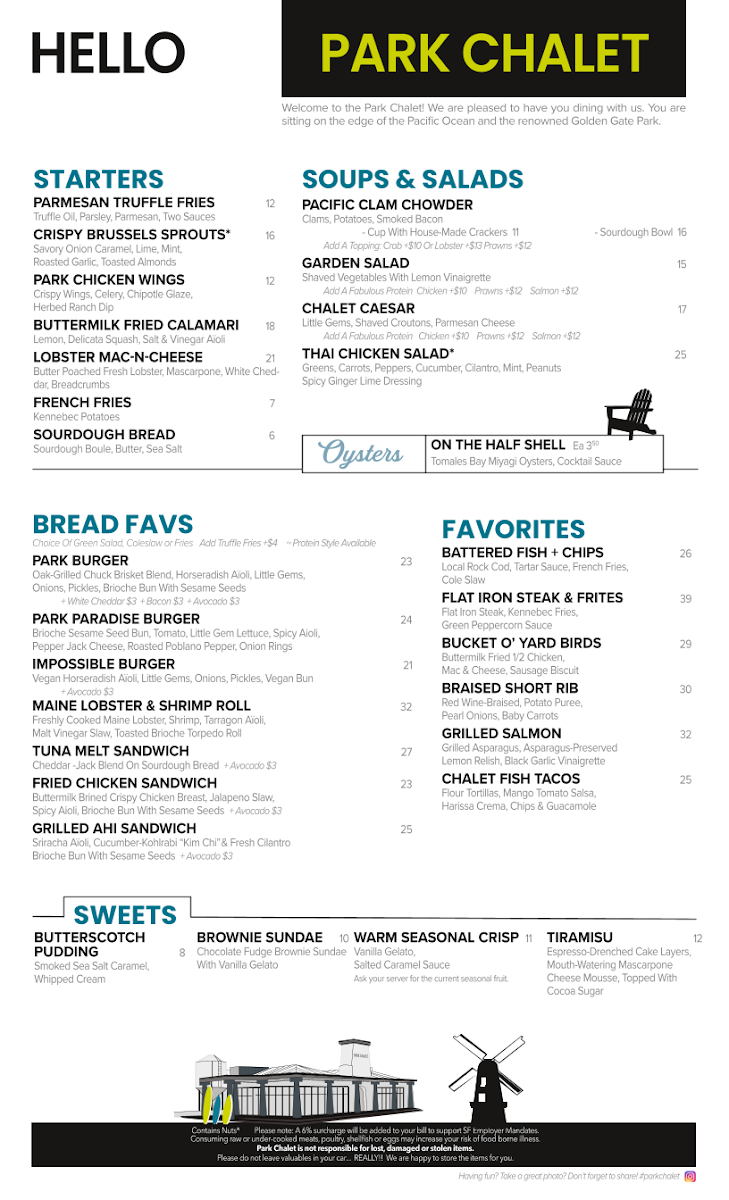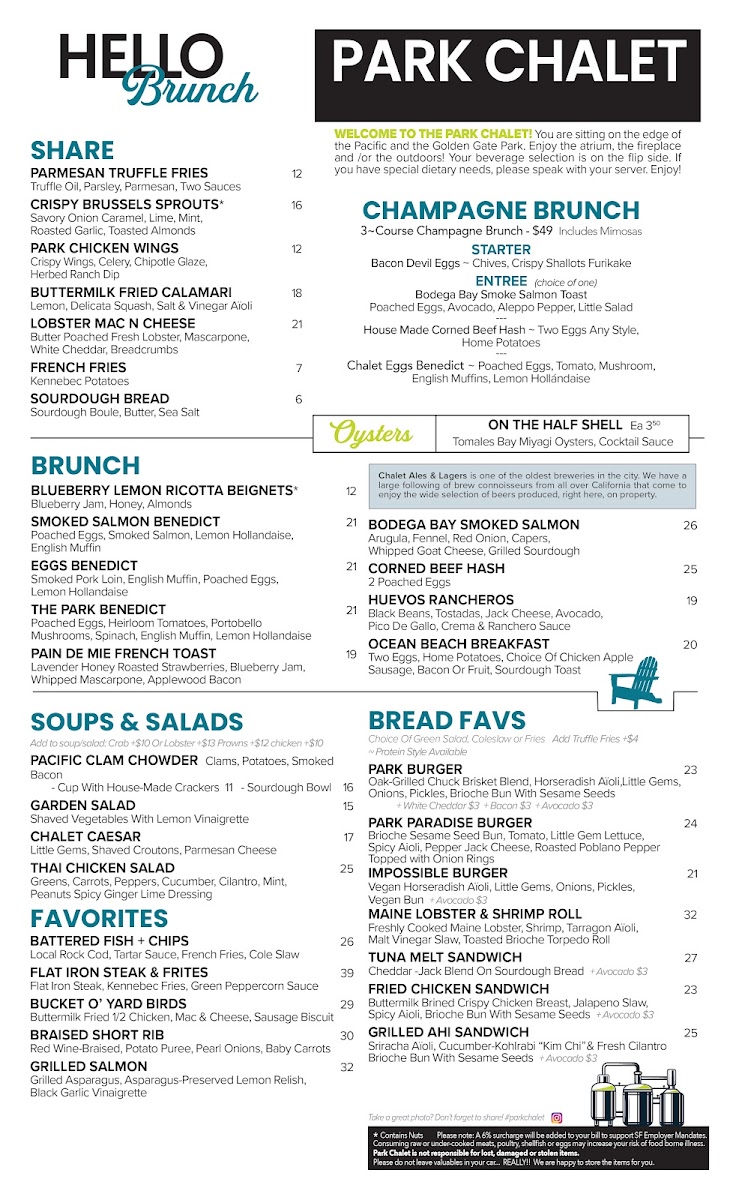 Welcome to Park Chalet, a delightful American restaurant located at 1000 Great Hwy, San Francisco, CA 94121. Nestled on the edge of Golden Gate Park, this gem is not just a dining spot; it’s an experience that marries the beauty of nature with delicious culinary offerings.