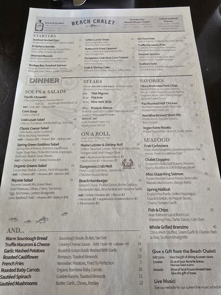 For those in the mood for something hearty, the Bodega Bay Smoked Salmon Toast, topped with poached eggs and avocado, is a delightful choice that marries freshness with flavor. And if you’re inclined to indulge in some ocean fare, the Oysters on the Half Shell ($3.50 each) are a must-try, offering a taste of the bay’s bounty with each slurp.